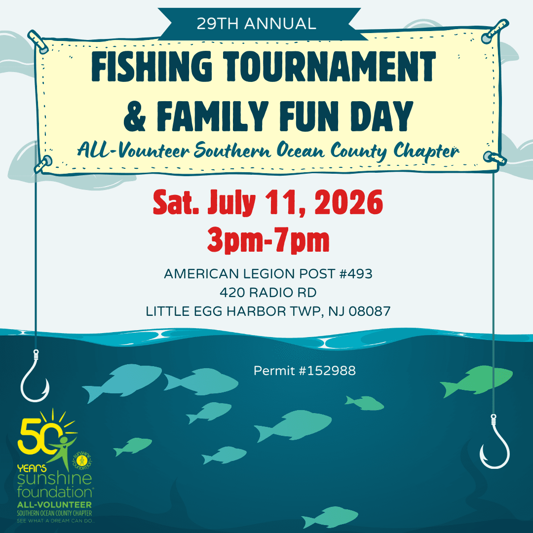 Fishing TournamentJuly 12, 2026 – Little Egg Harbor Twp, NJ – Join the 29th annual Fishing Tournament to answer