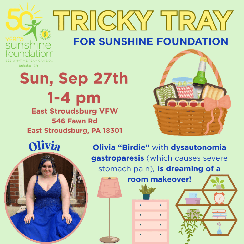 Join the fun for your chance to win from hundreds of raffles! This event fills the venue year after year, and all proceeds will help to fulfill Olivia’s dream! Olivia “Birdie”, diagnosed with dysautonomia gastroparesis and functional neurological disorder, dreams of a bedroom makeover to make it a peaceful, calm place to read and relax.